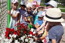 Лето - жаркая пора, а значит самое время заняться поливом цветов на клумбах . Ежедневно дети поливают свои любимые цветы.