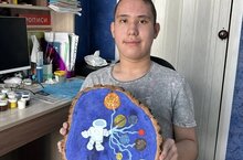 В рамках Декады Гагарина в Республике Татарстан учащийся 6б класса Ахатов Раиль особенно креативно изобразил свой взгляд на космическое пространство .