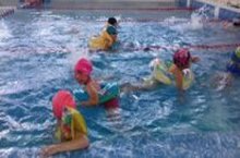 Сегодня воспитанники лагеря "Кояш" в бассейне "Дельфин"