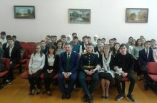 В рамках профориентационной работы для обучающихся 9-11 классов гимназии организована встреча с выпускником нашей гимназии Мухаметзяновым . Он ознакомил с профессией военнослужащих