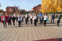 В рамках осенней акции“Здоровый образ жизни”,СМСки гимназии провели небольшую разминку на дворе гимназии - организовали флешмоб.