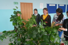Кыш буе гимназияне бизәп торсын өчен, бүлмә гөлләрен җәйдән үк тәрбияләргә кирәк. Бүген хезмәт һәм ял лагерына йөрүче укучылар яңа үсентеләрне күчереп утыртты. Коридордагы фикус, роза гөлләренең төпләрен йомшартты, тузаннарын сөртте.