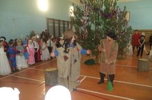Учащиеся 2а, 2б, и 4 класса устроила праздничный концерт для сказочных героев и Деда Мороза.