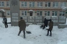 Члены отряда Юнармия очистили территорию памятника героям- односельчанам, павших во время Великой Отечественной войны 17.02.2017