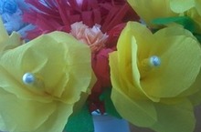 Учащиеся 5 класса ждут весну! Цветы изготовлены из гофрированнной бумаги.