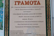 Конкурс был посвящён 35-летию со дня образования МЧС России и 30- летию со дня образования МЧС Республики Татарстан. на Республиканский этап конкурса поступили 184 конкурсные работы из 33 муниципальных образований республики, авторы 101 работы были определены победителями . Воспитанники старшей разновозрастной группыМБДОУ "Киятский детский сад" - Власова Ксения и Герасимова Валерия удостоились III места. Поздравляем девочек с этой победой!