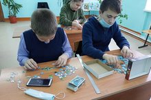 Участники кружка « Мир увлечений» на очередном занятии собирают картинки военных машин в преддверии « Дня Защитника» и знакомятся с историей военной техники .Руководитель Фомина Н.А.