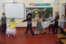 Ученики 4 класса, вместе с классным руководителем-Нигматуллиной С.А.,подготовили замечательное внеклассное мероприятие, посвященное осени. Они играли в рифмы, отгадывали загадки, рассказывали стихи, пели песни и танцевали.Все ребята, приглашенные на праздник из других классов, смогли поучаствовать в различных конкурсах. Все в конце восторгались сказкой "Репка" на новый лад.