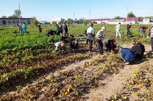 "Трудовой десант по уборке овощей ".В сентябре полным ходом идут осенне-полевые работы. Ребята дружно убирают выращенный урожай. Сегодня в нашей школе прошёл трудовой десант по уборке овощей, выращенных на школьном участке.Субботник прошел очень воодушевленно и активно, все были полны задора и желания убрать овощи в сухую тёплую погоду . На картофельном поле работали ребята 9-го класса. Ребята 6,8,10и11 классов убирали огурцы, морковь, свеклу и другие овощи.Ученики 5класса приводили в порядок территорию школы, собирая мусор. 7класс собирал яблоки и поливал цветы. Завершающим этапом стала совместная прополка дендрария. Школьный коллектив поработал на славу. Теперь вокруг нашей школы чистота и порядок, а все овощи и фрукты определены к месту. Всем СПАСИБО