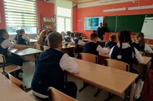 Во время классного часа учащиеся посмотрели короткий ролик о предпринимателях и их идеях, познакомились с ИИ-технологиями и возможностями.
