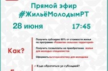 Министерством молодежи Республики Татарстан в рамках мероприятий Всероссийского Дня молодежи, в целях повышения эффективности информирования молодежи о действующих в Татарстане программах и мерах государственной поддержки молодых семей, молодых специалистов в улучшении жилищных условий 28 июня 2021 года в 17.45 проводится второй прямой эфир #ЖильёМолодымРТ.