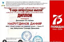 Поздравляем Насрутдинова Данияра, ученика 6 класса. Молодец!