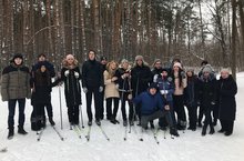 Учащиеся 11 класса на лыжне в сосновом бору.