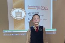 В 6-б классе был проведен классный час на тему: "Святое дело – служить Отечеству!" Это был не обычный классный час, а парламентский урок, посвященный важнейшему для России празднику.