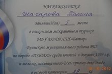 1 место - Биктагирова Алия, ученица 3 б класса,