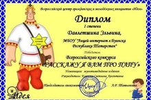 В интернете много различных конкурсов, а конкурсов про пап очень мало. Учащиеся 2 а класса ознакомились с этим конкурсом и решили участвовать в нем. И у нас есть результаты: Нуриева Дарина и Давлетшина Эльвина стали победителями и награждены дипломами I степени Всероссийского конкурса "Расскажу я вам про папу", а их классный руководитель Карпова С.А. награждена благодарственным письмом от оргкомитета Центра гражданских и молодежных инициатив "Идея" за организацию и активное участие школьников во Всероссийском конкурсе. Председатель оргкомитета А.Р. Татьянина г. Оренбург. Молодцы!