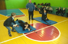 Организатор-преподаватель ОБЖ Рахматуллин Р.М. провел учебно-тренировочные занятия по оказанию первой медицинской помощи (ПМП) для учащихся 7 классов. Учащиеся посмотрели учебный фильм по ПМП. После чего сами демонстрировали правила оказания ПМП пострадавшим.