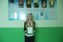 Поздравляем ученицу 8 "б" класса Герасимову Карину, занявшую 2 место на XIII районной научно-практической конференции школьников имени Л.Н.Толстого. Руководитель: учитель русского языка и литературы Кириллова В.В.