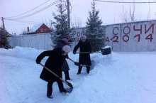 Сегодня сотрудники школы: учителя, технический персонал, заведующий хозяйством вышли дружно на территорию школы убирать снег. Замело дорожки, снежные красочные фигуры. Работа на свежем воздухе всем пошла на пользу.