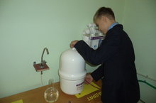 В кабинете химии установлены 5-ти стадийная система очистки воды для получения воды высокого качества и электрический аквадистиллятор для получения дистиллированной воды. Ученики 8"а" Гисматуллин Наиль и Усманов Ренат уже изучили принцип работы оборудования и собрали небольшую колбу дистиллированной воды. Ученики 8"а" класса Гимадеев Эмиль и Хисамутдинов Реналь провели сравнительный анализ воды из под крана и дистиллированной воды с помощью химических опытов. Желающие, подключайтесь! Нам предстоит еще многое исследовать.
