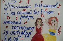 28 октября в 14.00 в спортзале школы прошел "Осенний бал" для учащихся 5-8 классов. 29 октября учащиеся 9-11 классов приглашаются в Досуговой центр г.Буинска на традиционный осенний бал. Все ребята с нетерпением ждут этого события, ведь здесь они смогут участвовать в конкурсах и показать себя в самодеятельности.