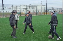 Учащиеся 6 класса на футбольной площадке.