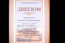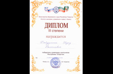 Татар теле һәм әдәбиятыннан II халыкара олимпиадада III дәрәҗәдәге диплом белән бүләкләнүче - 11а сыйныфы укучысы Хәбибуллина Ләйлә 01.05.2014