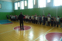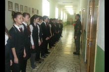 В течении месячника оборонно - массовых мероприятий идёт подготовка к смотру строя и песни. Учащиеся усиленно готовятся: маршировка не прекращается ни в спортзале, ни в коридоре.