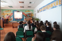 12.02.14 с учащимися 7А класса была проведена викторина "ВОВ в датах и событиях". Активное участие приняли Мухамиев Р., Хасанов К., Садуров Э., Низамова Н., Гисматуллин Н. В конце мероприятия учащиеся разгадывали кроссворд о ВОВ. Руководители: библиотекарь Хасанова И. Х., учитель географии Мингалиева И. Р., учитель ОБЖ Рахматуллин Р. М.
