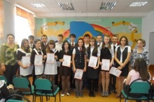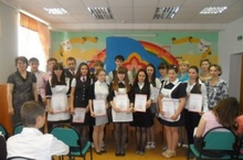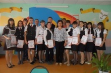 Награждение победителей и призеров Республиканской олимпиады КНИТУ "Будущее большой химии - 2012" по химии вместе с учителем химии Гениятуллиной Г.И. и заместителем директора по НМР Зайнуллиной Г.Д. 18.05.2012