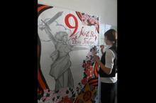 Ведется подготовка к празднованию Дня Победы. Группа художников в составе Камаловой Л, ученицы 7б класса, Захаровой К. , ученицы 7б класса, Артемьевой Н. , ученицы 9а класса, Бондаренко Я., ученика 10а класса под руководством Карпухиной М.С. готовят поздравительный стенд.