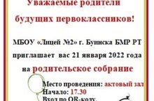 МБОУ "Лицей №2" г. Буинска БМР РТ приглашает вас 21 января 2022 года на родительское собрание.