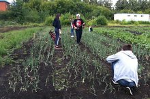 День 10 в лагере труда и отдыха. Ребята занимались прополкой овощных культур, собирали вишню.