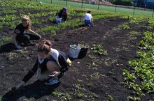 Седьмой день работы лагеря туда и отдыха. Ребята продолжают заниматься благоустройством территории школы, трудиться на пришкольном участке.