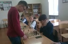 Сеанс одновременной игры на школьном шахматном турнире .Гималиев А.,воспитанник кружка "Белая ладья" признан абсолютным чемпионом(рук.кружка Гафурова В.А)