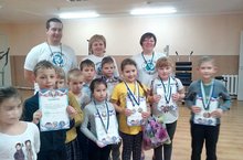Команду учащихся начальных классов,занявших II место в сборной эстафете вольным стилем в соревнованиях по плаванию между 1-2 классами