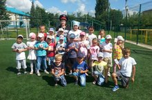 В лагерь "Экос" пришли гости- старшая подготовительная группа детского сада"АБВГДЕЙКа".Дети соревновались в знаниях по правилам дорожного движения.Игру проводил представитель дорожной полиции Сигнал Сигналыч.