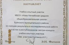 Үткән уку елында безнең мәктәп республикакүләм "Мәктәп яны тәҗрибә участогында эзләнү эшләре" дигән конкурста катнашып, Татарстан Республикасының Мәгариф һәм фән министрлыгы дипломы белән бүләкләнде. 09.02.2015