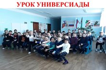 13 нче февраль көнне мәктәптә 1-9 сыйныф укучылары катнашында Универсиада дәресе уздырылды. Дәрес гадәттәгечә өй эшен барлаудан башланып китте. Укытучы укучылардан кайсы спорт төрләрен белүләрен тикшерде. Бергәләп бу уеннарның кайда, ничек , кайчан уздырыла башлавы ачыкланды. Шулай итеп “Универсиада” төшенчәсенә аңлатма бирелде. Казанда узган студентлар ярышы нәтиҗәләре искә төшерелде, Красноярск шәһәрендә узачак кышкы Универсиада турында аңлатылды. Дәрес барышында укучылар игътибарына кышкы Универсиада турында видеоролик, презентация , Себер картасы, спорт уеннарының эмблемасы, талисманы күрсәтелде. Универсиада Гимны яңгырады. Мәктәбебезнең спортсмен кызлары һәм егетләренең уңышлары да бик сөенерлек. Киләчәктә узачак Универсиадаларда алар һичшиксез җиңүче булырлар! Чара дәвамында залда “ фоторепортёрлар » һәм ачык микрофон эшләде. Дәреснең йомгаклау өлешендә сәламәт яшәү рәвешенең нигезе - спорт икәне кат-кат искәртелде. Универсиада дәресен Гыйзәтуллина Г.Р. үткәрде. 13.02.2019