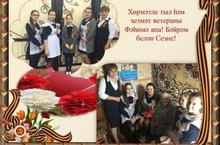 Бөек Җиңү көне! Бу сүз йөрәкләргә мәңгелеккә уелган. Хезмәт һәм тыл ветераны Фәһимә Гозәерова белән очрашуга барды 9 сыйныф укучылары: күчтәнәчләр тапшырдылар, капкага наклейка ябыштырдылар, ветеранны чәчәккә күмделәр. Очрашуны сыйныф җитәкчесе Шәрәфетдинова Л.Г. оештырды. 10.05.2016