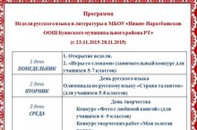 В соответствии с планом работы школы на 2015-2016 учебный год с 23 по 28 ноября 2015 года прошла Неделя русского языка и литературы . Цель предметной Недели : - развитие интереса к изучаемому предмету; - развитие интеллектуального и творческого потенциала учащихся; - развитие коммуникативных навыков между учениками разных возрастов. 09.12.2015