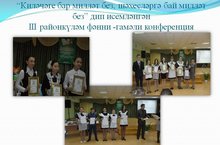 Буа шәһәрендә үткәрелгән “Киләчәге бар милләт без, шәхесләргә бай милләт без” дип исемләнгән III районкүләм фәнни-гамәли конференциядән укучыларыбыз җиңү белән кайттылар. Укучылар Шәрәфетдинова З.Ф., Галимҗанова А.Р., Вәлиева Э.И. призлы урыннар алдылар (укытучылары Шәрәфетдинова Л.Г., Галиуллина З.Ф.). Киләчәктә дә уңышлар Сезгә! 20.04.2015
