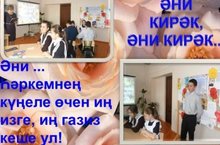 Туган телгә, газиз аналарга мәхәббәт, игътибарлы мөнәсәбәт, шәфкатьлелек тәрбияләү максатыннан 8 нче сыйныф укучылары әниләргә багышланган ачык сыйныф сәгате үткәрде. Укучылар әниләре турында инша язып, шигырьләр сөйләп тәрбия сәгатен алып бардылар. Икенче әниләре урынында булган укытучыларга багышланган чыгышлар бар иде. Сыйныф җитәкчесе Шәрәфетдинова Л.Г. үткәргән чара бик матур тәэсир калдырды. 07.04.2015