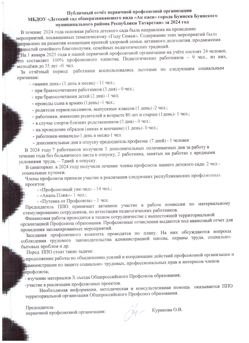 Состав профкома МБДОУ "Ак каен"