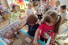 Сегодня воспитанники второй младшей группы рассматривали мини-музей «Татарская изба», чтобы поближе познакомиться с культурой, бытом и жизнедеятельностью татарского народа в прошлом. Во время занятий дети узнавали, чем занимались хозяин и хозяйка в деревнях много лет назад, слушали рассказ воспитателя о различных предметах быта, отвечали на вопросы и сами их задавали. Также они рассматривали одежду, посуду, игрушки и определяли на ощупь прочность изделий.