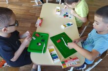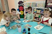 На занятии юные художники научились изображать основные элементы железной дороги: вагончики и шпалы. Дети с большим энтузиазмом работали кисточками и красками, старательно выводя ровные линии рельс и яркие вагоны своего будущего поезда.