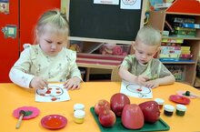 Сегодня воспитанники второй младшей группы на занятии по художественно-эстетическому развитию учились вырезать и наклеивать круглые предметы. Ребята закрепили представления о различии предметов по величине: большое яблоко, маленькое яблоко.
