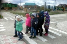 Воспитатели с детьми старших и подготовительных к школе групп ходили на экскурсию к проезжей части дороги на перекрёсток. Целью экскурсии было расширение и углубление знаний детей по правилам дорожного движения, полученных на занятиях по ПДД в группах. Дети наблюдали за движением транспорта и пешеходами на дороге. Воспитатели в доступной для детей форме показывали и рассказывали о дорожных знаках, о том, как правильно переходить дорогу. Отметили, что на улицах города нужно быть внимательными и осторожными. (источник: Ятокина Р.И.)