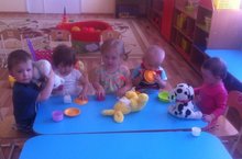 Дети первой группы раннего возраста очень любят играть. Во время игры они становятся более активными и самостоятельными. Сегодня малыши «кормили» своих любимых зверят. Во время игры воспитатель читала потешку, сопровождая текст движениями. (источник: Исрафилова Г.Р.)