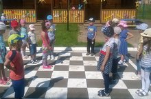 Дети подготовительной к школе группы на игровой площадки с удовольствием играют в шашки. Игра в шашки в детском саду - интеллектуальный досуг ,который направлен на формирование предпосылок учебной деятельности и на развитие интегративных качеств детей, обеспечивающих им социальную успешность.